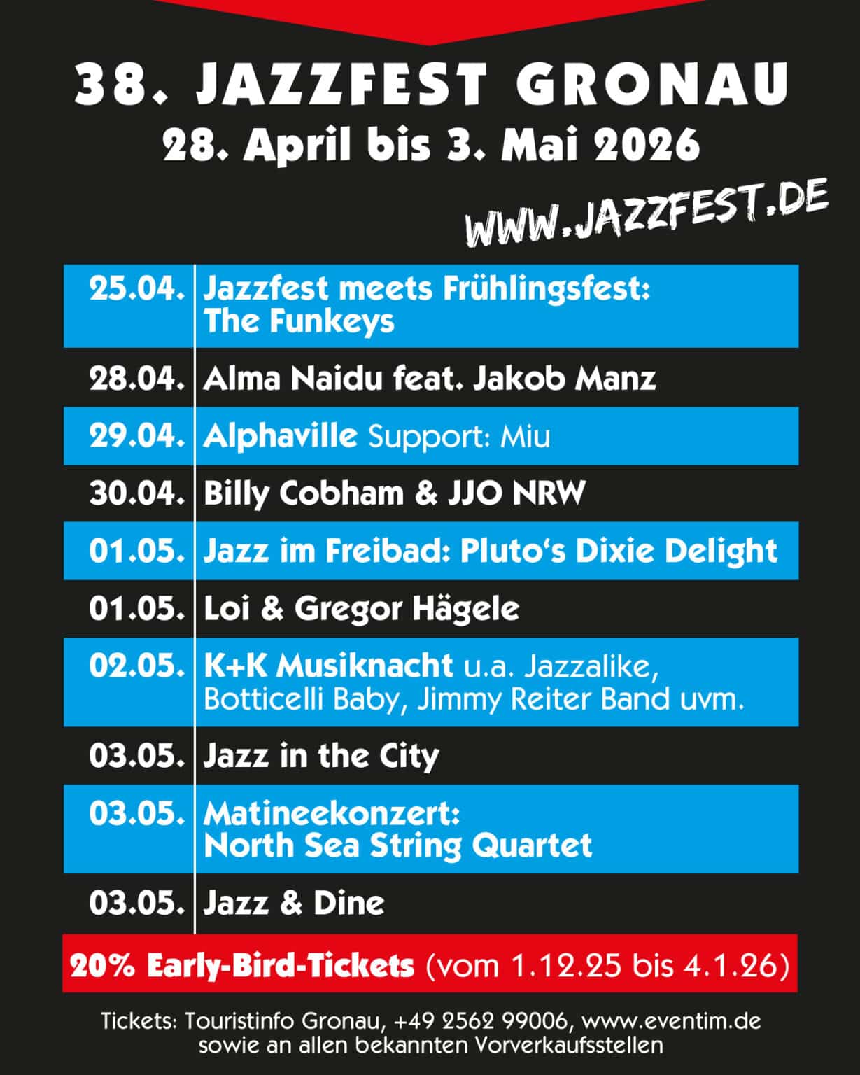 Wir sehen uns beim 38. Jazzfest von Ende April bis Anfang Mai 2026!